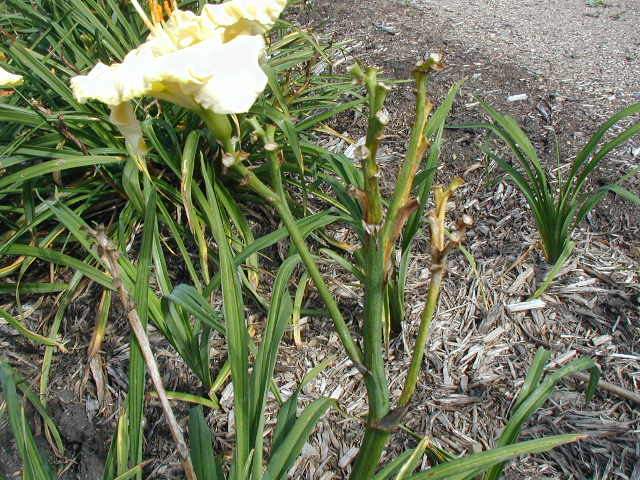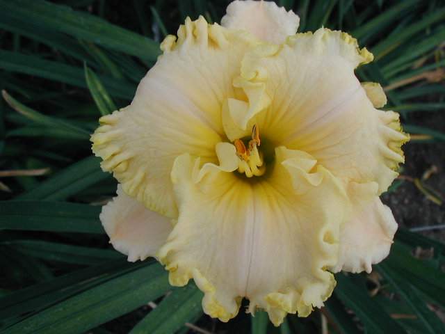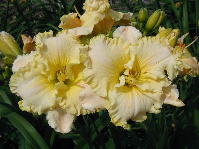 PEACE BEYOND UNDERSTANDING TET 57902 {(First Knight x (Ed Brown x Tet Siloam Ralph Henry)} 32”, M, Sev, Re, fr, 5”, consistent 4-way branching with 3 well-placed laterals that arch out so blooms don’t open on top of each other; average budcount of 20. Pale yellow with pale pink blush and pale pink midribs and sepals; darker yellow eye and edge; green throat. Consistent blooms. Some sculpting and delicate ruffling. Strong grower. Yellows just don’t “talk” to me the way purples do. I confess that I have a hard time telling them apart, so to me this was just another pretty yellow. However, when Larry Grace saw it this past summer, he noted that it had one of the most perfect scapes he’d ever seen (height, perfectly spaced laterals and budcount) and with its parentage it should be a great breeder for a lot of colors. To this renowned yellow breeder, it was indeed distinctive and very special (and he bought it) - hence the price. Fertile both ways.