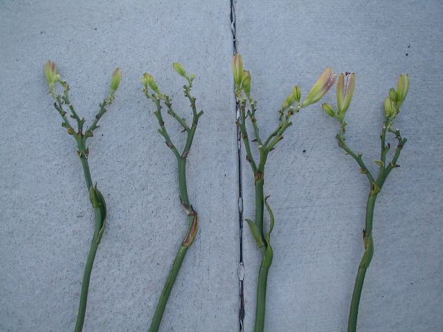 white ivory which will show lots of sharks when temps are in the 80’s and up (pictured here on a cool day – see website for warm days). Thick substance; recurved. Might show spots on the first couple of blooms due to thrip, but the rest of the summer it is almost flawless on hundreds of bloom despite heavy dew. A favorite of Spring Fling participants no matter what their breeding interests for its wonderful consistency and beautiful color and form. Much admired by 2007 convention visitors and planned to be included in the upcoming Landscaping with Daylilies book. Good reports from West Virginia and North Carolina (where it was planted and grown in consistent 90-105 degree heat and drought and it bloomed with good color and remained strong). Very fertile both ways. Haven’t yet seen many kids on this one (click here to see what I’ve seen so far), but will be loads in the spring (will put them on the blog as they bloom).