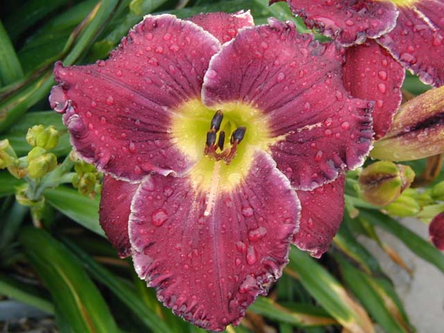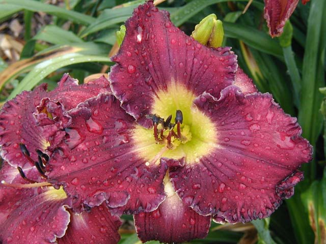 | GOSPEL TRUTH TET 28705 [Desire of Nations x (((sdlg x Fortune’s Dearest) x Tet LBB) x Lake Effect)]. 5.5”, 32”, 4-way branching (range of 2-5), 25 buds (range of 10-35), Dor, M to LM (and often blooms into late September), some or lots of Minnesota instant rebloom depending on the year, fr. Early morning opener and gorgeous foliage all season. Magenta purple with a purple eye; purple edge trimmed in ivory; near white to olive green throat. Face ranges from very pretty to pretty boring. So why introduce this one? Because of its strong performance in terrible weather, plus it blooms its head off on a magnificent scape when almost everything else in the garden has bloomed out. Didn’t use it in hybridizing but pollen looks fine and it has fertile parents.