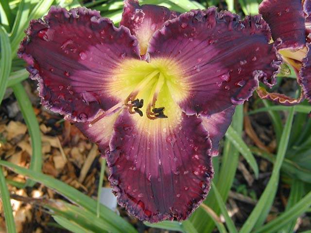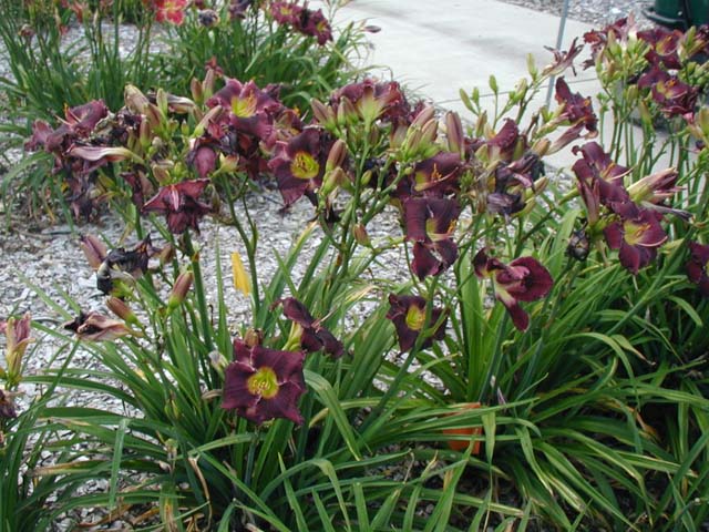 | FROM SEA TO SHINING SEA TET 17309 [(Not Guilty x Faith That Moves Mountains) x Desire of Nations]. 6”, 32” (36” to top of flower) 5-way (range of 3-7), 27 buds (range of 15-39), some Minnesota instant rebloom, M, super hardy evergreen that performed superbly in our malaise of 2012 (Note: Ev foliage habit noted in the greenhouse – not sure about outside, where it could be a Sev). Clear merlot with a dark lavender eye and edge; green throat. Interesting and distinctive. Please note that this flower can look totally different from day to day as you can see in the pictures above, and it has not been easy for me to photograph. I love all of its different looks – from regal to kind of spooky to a complete reversal of the petal and eye colors. The changes are sometimes weather-related, but sometimes not, and unpredictable. Fertile both ways and it has made some beautiful kids – Click Here for examples.