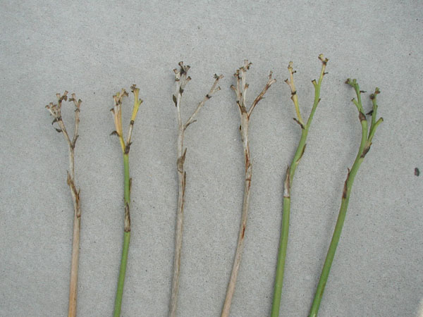 TET 40807 [sdlg x sdlg]. Lots of different parents in these sdlgs, including Gnashing of Teeth, Heartbeat of Heaven, Storm Shelter, Jane Trimmer, Tet LBB, Lake Effect, Uppermost Edge, Wolf Eyes, Regal Majesty, Clothed in Glory, etc. 7” (range of 7-9”), 24” (plus flower), 3-way branching (up to 6-way in the greenhouse) 12 buds (8-10 unprotected location, 12-17 in protected location some years), Sev, some MN instant Re every couple of years.