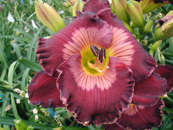 Merlot with icy pink lavender eye and edge, yellow to green throat. Distinctive, mesmerizing color combination in the self and the eye. Good opener but not EMO or CMO. Based on its strong greenhouse performance, I think budcount and branching and height will be better in warmer zones. Fertile both ways and super easy pod parent. I have a nice intro coming from it in a couple of years and looking forward to seeing lots of kids from it this spring.