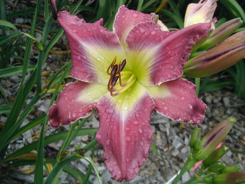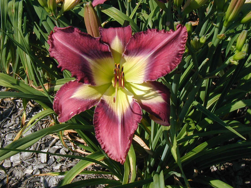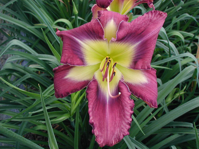 STAR COMMANDERTET 27813 [Cosmic Struggle x (sdlg x Trouble in Paradise)] x Flying Purple People Eater. 8" (range of 7-9"), 30", 3-4 way, 15 buds, M, Sev, Re,. Dark lavender pink; multi lavender eye; lavender plus ivory edge; chartreuse throat. Great substance. Fertile both ways and parent of the beautiful, large, fancy future 34814 |